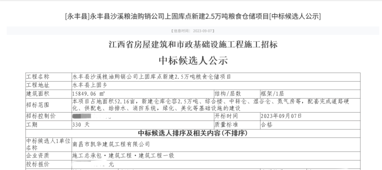 付出會有收獲——南昌市政開發(fā)集團(tuán)中標(biāo)永豐縣沙溪糧油購銷公司上固庫點新建2.5萬噸糧食倉儲項目