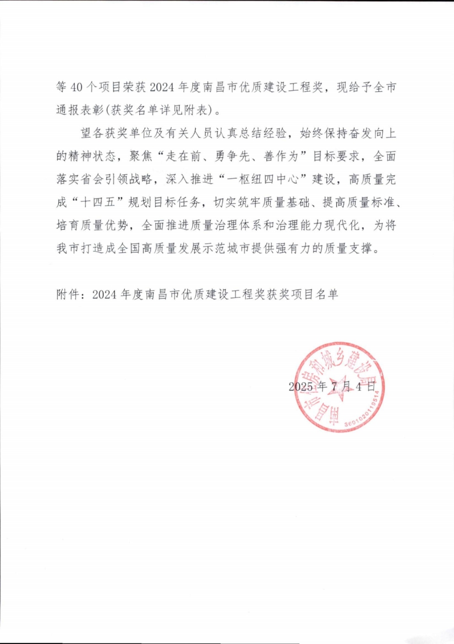 喜報(bào) | 南昌市政開發(fā)集團(tuán)兩個(gè)項(xiàng)目榮獲2024年度南昌市優(yōu)質(zhì)建設(shè)工程獎(jiǎng)